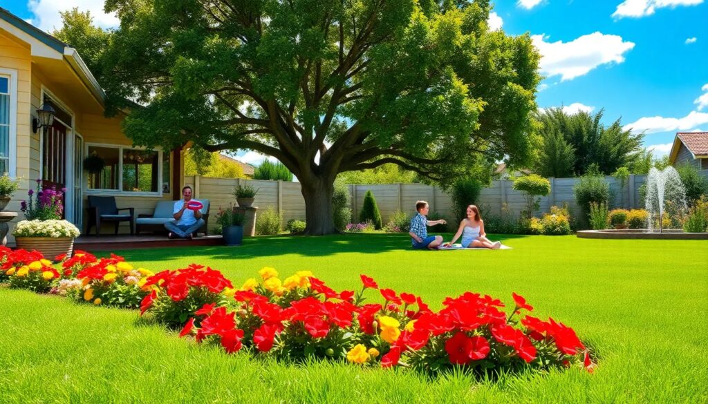 - Consider layering different textures, such as combining grass with decking or stone patios.