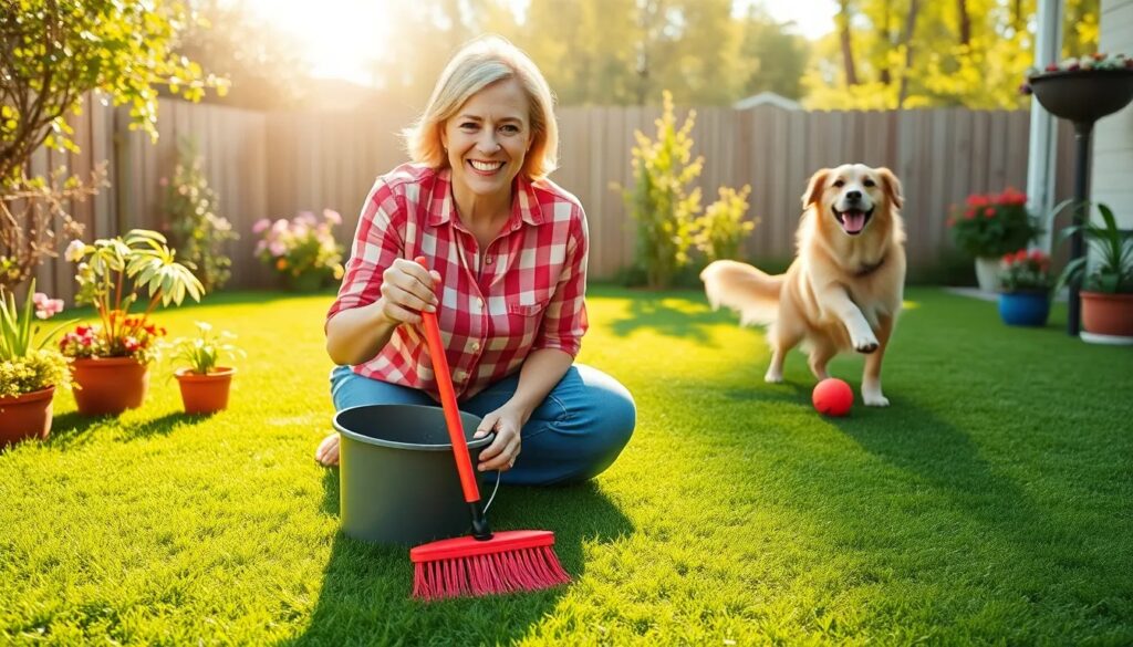 Cleaning artificial grass when you have dogs involves specific techniques to tackle messes effectively. Begin by promptly removing solid waste to prevent odor and staining. Use a dog waste bag to pick up any droppings and dispose of them properly.